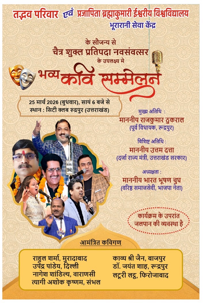 रुद्रपुर में भव्य कवि सम्मेलन का आयोजन, नगरवासियों को आमंत्रण